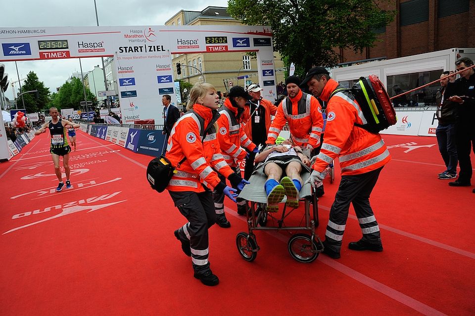 Die ehrenamtlichen Rettungskräfte der Hilfsorganisationen Arbeiter-Samariter-Bund, Deutsches Rotes Kreuz Hamburg, Johanniter-Unfall-Hilfe sowie des Malteser Hilfsdienstes hatten während des Marathons in Hamburg viele Einsätze. Zahlreiche Läufer mussten im zentralen Sanitätsbereich, an den vielen Unfallhilfsstellen und auf der Strecke behandelt werden. So zählten die Sanitäter und Ärzte bis zur jetzigen Stunde mehr als 290 Fälle, in denen sie Erste Hilfe leisteten. Die betroffenen Läufer waren erschöpft und litten oft unter Flüssigkeitsmangel. Ernstere Zwischenfälle gab es jedoch nicht. Die meisten Sportler konnten die Sanitätsbereiche schon bald wieder verlassen. Rund 33 Personen brachten die Sanitäter mit dem Rettungswagen in eines der umliegenden Krankenhäuser. "Die Läufer bereiten sich immer professioneller auf den Lauf vor. Das erleichtert uns die Arbeit", so Jürgen Mittas, Einsatzleiter vom DRK. Insgesamt waren rund 300 Helfer der Organisationen ASB, DRK Hamburg, Johanniter sowie Malteser an den Unfallhilfsstellen entlang der 42,195 Kilometer langen Laufstrecke sowie hinter dem Ziel im Einsatz.