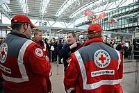 Das Rote Kreuz hat die DRK-Sanitätsstation am Flughafen in Hamburg heute verstärkt. Zudem haben DRK-Mitarbeiter eine zweite Sanitätsstation im Sicherheitsbereich für gestrandete Passagiere aufgebaut.…