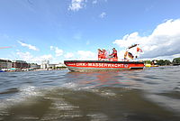 Das DRK ist mit Sanitätern sowie Ärzten, Einsatzfahrzeugen und Booten vor Ort.