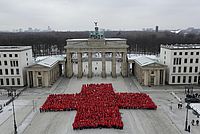 Rund 1.800 Engagierte aus ganz Deutschland haben Anfang Januar ein riesiges rotes Kreuz vor dem Brandenburger Tor in Berlin geformt.